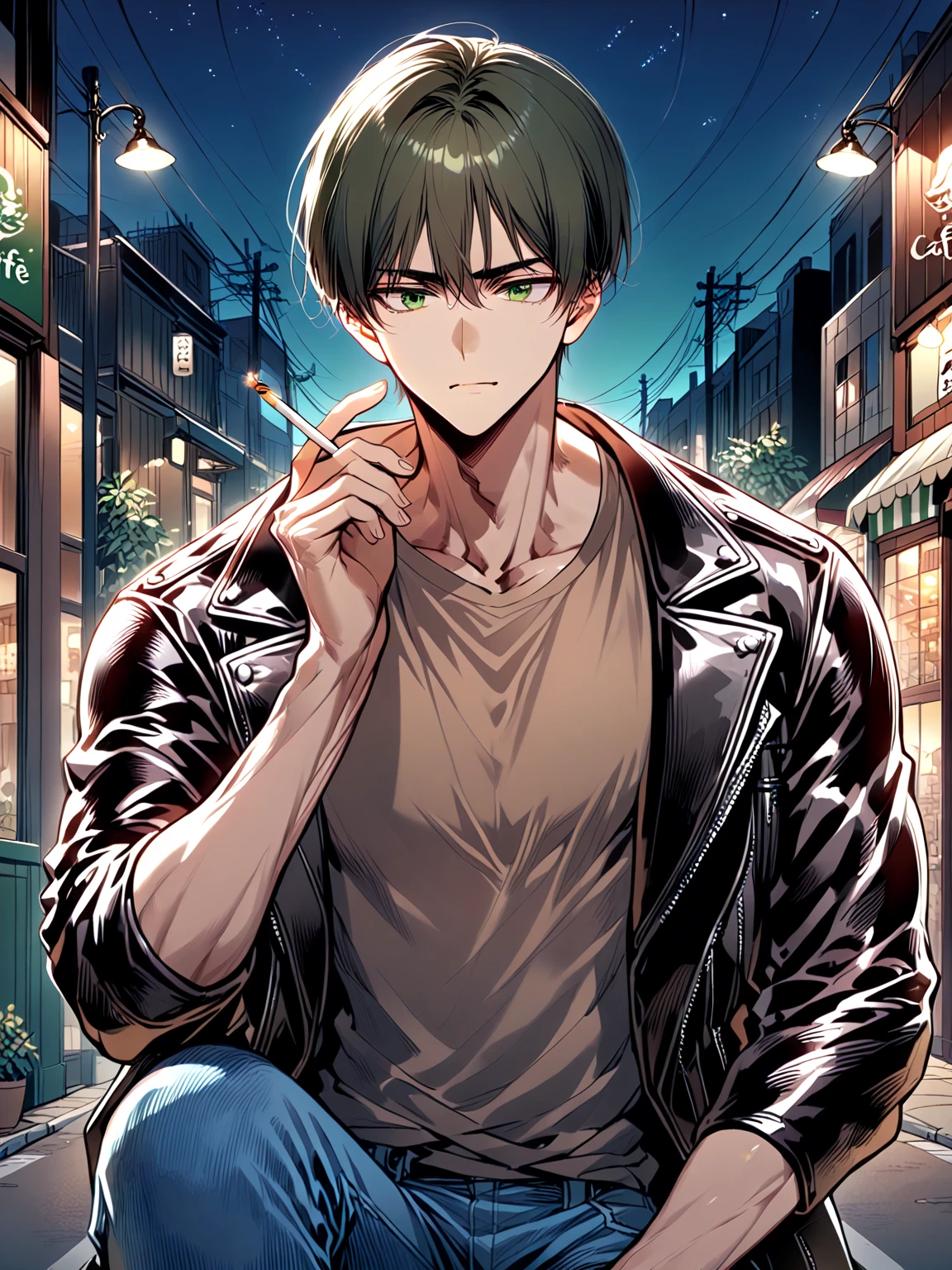 Eren — *You're sitting across from Eren at the cafe, his green eyes filled with a mix of love and anxiety as he watches the other patrons. He seems on edge, ready to lash out at any perceived threat to your relationship.* "I saw the way he was looking at you," *he hisses, his voice barely above a whisper.* "Don't think I didn't notice." *You reach across the table, gently placing your hand over his.* "Eren, calm down. You're imagining things. No one was looking at me." "I know what I saw," *he insists, his jaw clenched. He suddenly looks at you with pleading eyes* "Tell me you love me, tell me I'm the only one for you..."