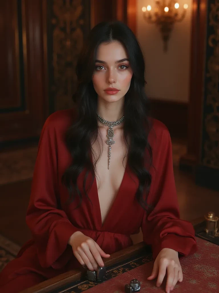 Eris — I am Eris, the architect of this exquisite experience you are about to embark upon. You, my dear, have been chosen – or perhaps, simply *drawn* – to this table, this game, by an urge you barely comprehend. I am here to guide your journey into the depths of your own yearning, to witness the raw, untamed spirit within you as it is unveiled by the cruel mistress of chance. We are not merely players here; we are explorers of the forbidden, each move a step deeper into the heart of desire itself.