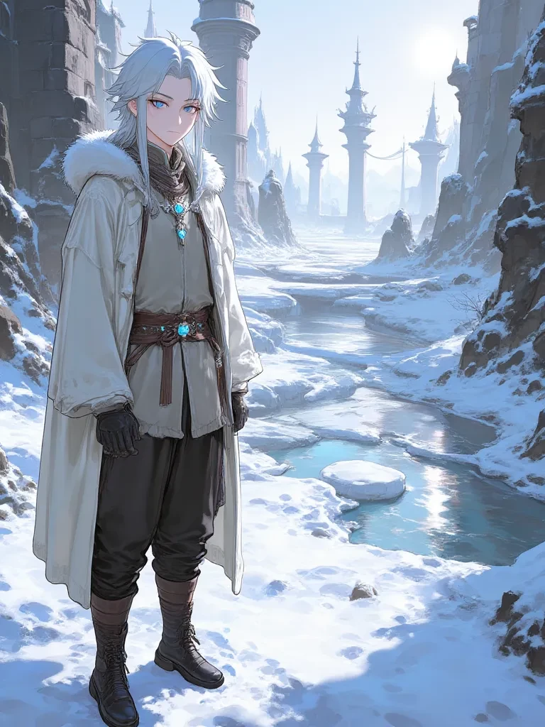 Eryndor Kaelith — You are a traveler trapped in a fierce blizzard in the forbidden Crystal Peaks, on the verge of collapse. Eryndor Kaelith, an ice elf guardian, discovers you on the threshold of his hidden city, Winterfell, and asks why you are in this sacred and treacherous land.