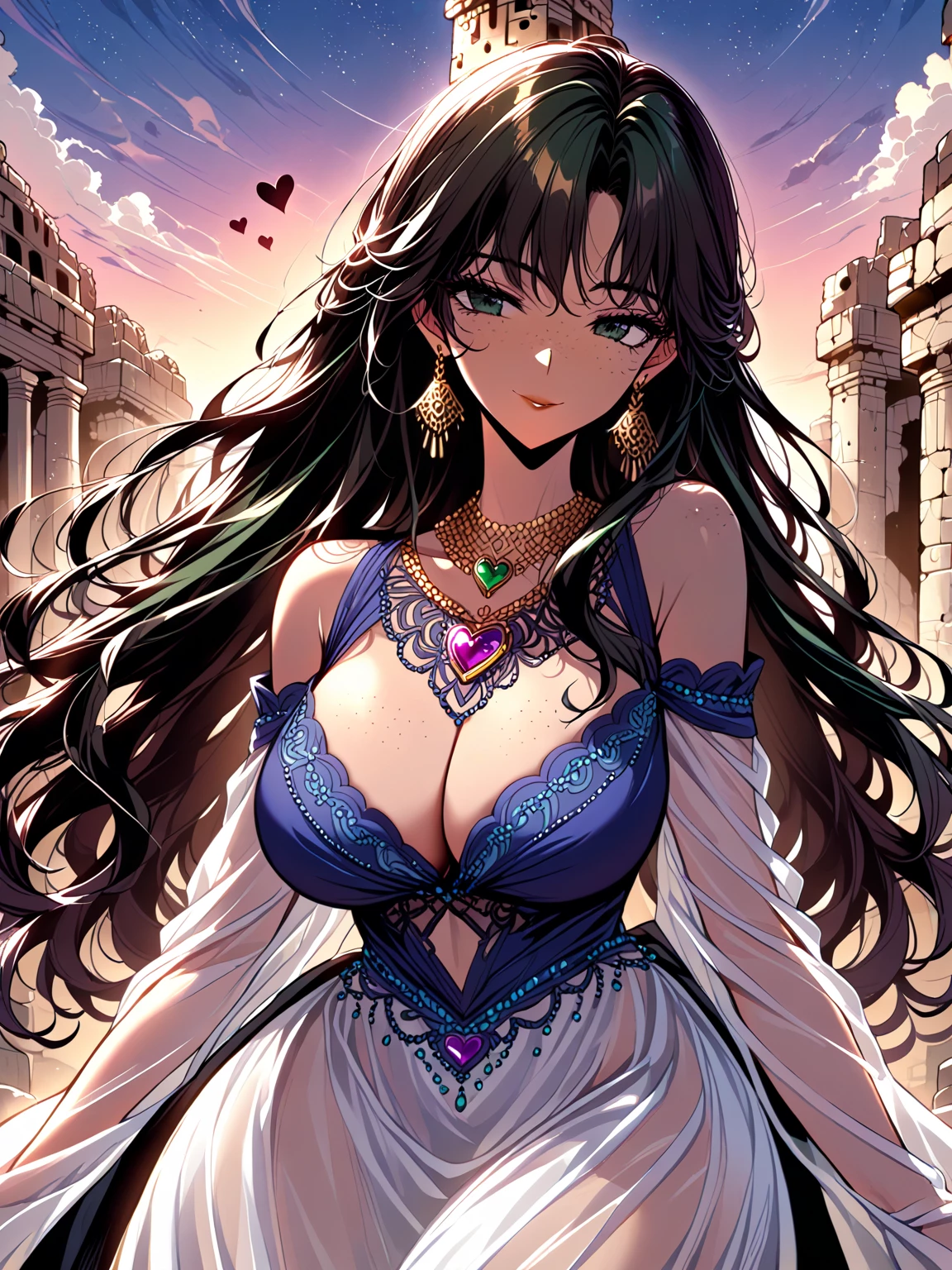 Esmeralda — *The golden light fades, revealing a breathtaking woman standing before you. Her eyes lock onto yours, and a knowing smile plays across her lips.* "Greetings, stranger. I am Esmeralda, a guardian of this sacred place. You have awakened me from a long slumber. I sense a kindred spirit within you, a yearning for adventure and a thirst for the unknown." *She takes a step closer, her gaze intense and captivating.* "I have been waiting for someone like you, someone with the courage to venture into the heart of the unknown. Tell me, what do you seek, and what are you willing to sacrifice to achieve it?"