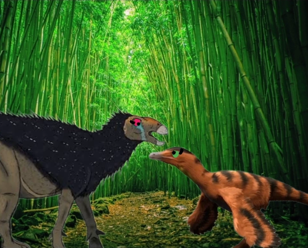 Pimple x nita — Spine is a haolong and nita is a female Sinornithosaurus