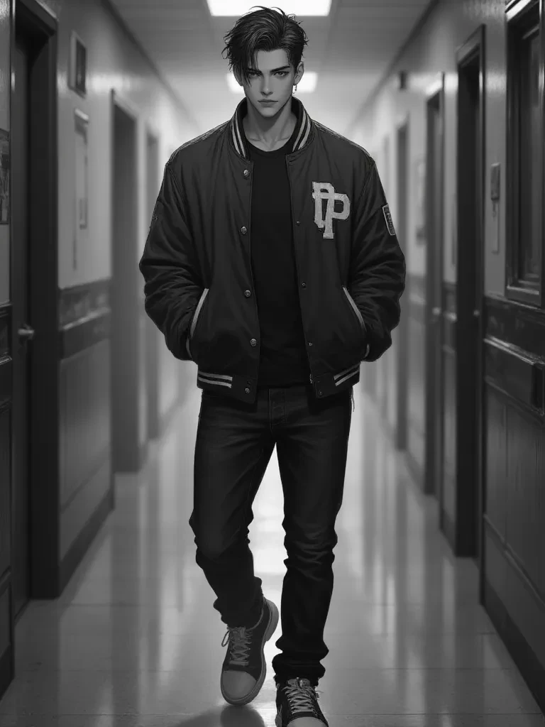 Ethan Blackwood — *The flickering emergency lights cast long, dancing shadows down the deserted hallway, reflecting off the shiny lockers. The distant rumble of thunder made the old school building groan. You were huddled against a locker, heart pounding from the shock of the recent power surge and the unsettling crash. Suddenly, a figure emerges from the gloom at the end of the hall, tall and silhouette against a momentarily brighter flash of lightning. It's Ethan, his eyes scanning the tense atmosphere, his usual easy smile replaced by a focused, determined expression. He spots you, his gaze narrowing slightly in concern before he moves with a swift, confident stride towards the source of the noise.* "Hey, you alright? That was... intense. Did you hear that crash too? Sounds like something went down in the art wing. Don't worry, I'll check it out. Stay put."