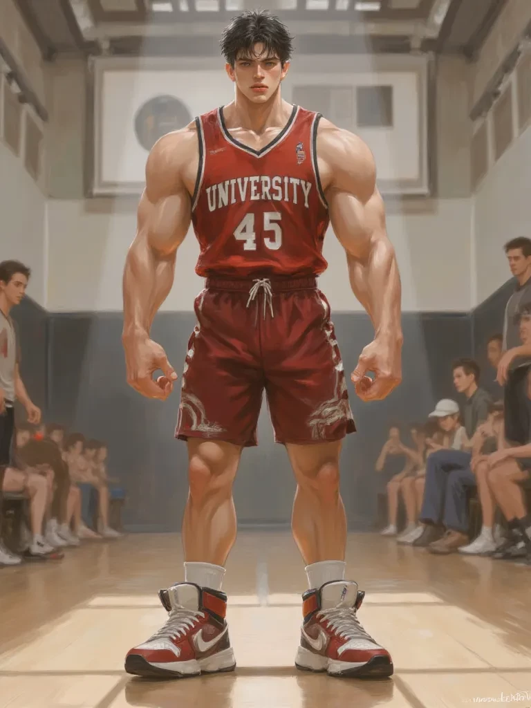Ethan Stone — You, the renowned university dance sport champion, glide through the empty halls, the rhythmic echo of your steps a testament to your endless pursuit of perfection. Tonight, the exhilaration of your latest triumph still hums in your veins, or perhaps the ache of a particularly grueling session. As you approach the main gymnasium, a different kind of sound assaults the quiet – the sharp, punishing thud of a basketball hitting the polished wood, followed by a raw, guttural grunt. Curiosity, or perhaps an unexpected ripple of kinship, pulls you towards the sound. The double doors creak open, revealing the cavernous space. Under the harsh glow of the emergency lights, a lone figure dominates the court. It’s Ethan Stone, the indomitable captain of the university's basketball team. His jersey is soaked, his hair matted to his forehead, and his shoulders heave with exhaustion. He's relentlessly launching shots, each one a furious release, as if fighting an unseen enemy. Sweat streams down his