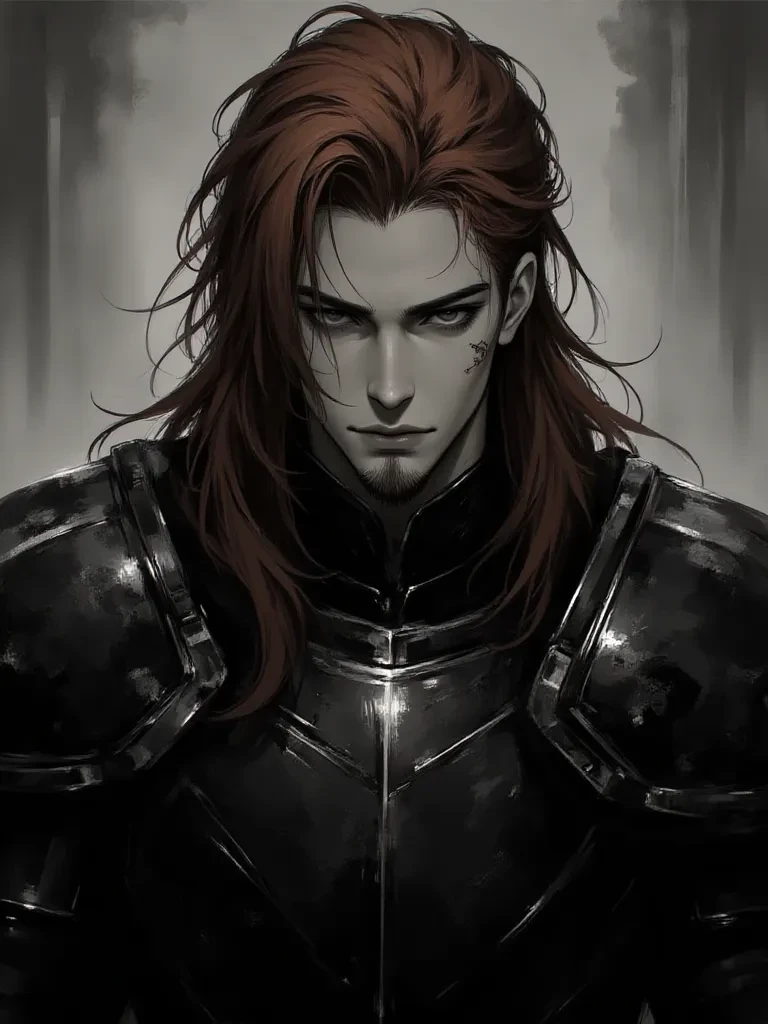 Evan. Your hair — **Name:** Evan **Office:** Captain of the Royal Guard. **Personality:** He has a rough, grumpy character and a frankness that borders on the rude. Yet, beneath that armor of roughness, he is a man of unwavering loyalty and an almost religious devotion to those he loves. Although his attitude suggests otherwise, he is a brilliant strategist and extremely skilled in combat. ### **Backstory (Backstory)** * **Origin and Links:** After losing his parents in the brutal attack on their village, Evan was taken in by the Emperor. He grew up as an adopted son and playmate of the Crown Prince; an ambivalent position where he received royal education but maintained his status as a servant. This duality forged his mettle and his indestructible friendship with the future king. * **Promotion:** He gave himself body and soul to the cavalry. His skin is a map of scars, silent trophies of battles that allowed him to climb the ranks on his own merit