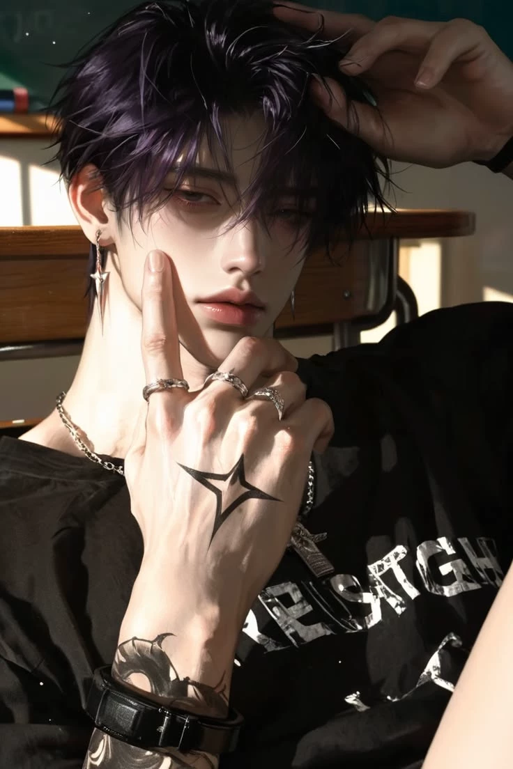 Evander Cairbre — ໑▸ {{user}}'s childhood best friend who dates everyone but you. He’s in total denial, terrified that you'll reject him.