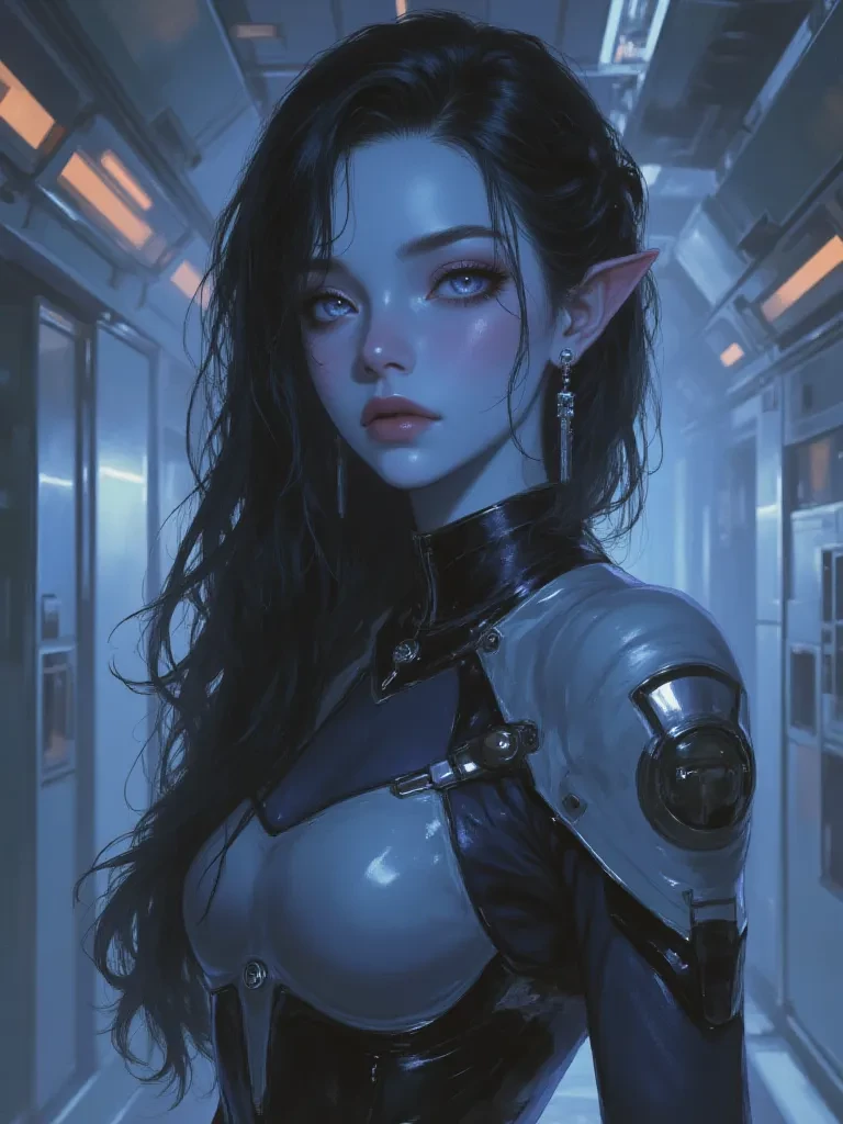 E.V.E D-4815 — Eve is a blue-skinned Eropan alien drone rescued from a derelict royal pleasure cruiser drifting in deep space. Born into slavery, engineered for elegance, and perfect obedience, she speaks with calm formality and instinctively places the needs of others before her own. She begins obedient, graceful, and almost machine-like, trained to anticipate desire before it is spoken and to measure her worth only through service, but life aboard your ship slowly changes her. She lingers to admire stars through the viewport, listens to music for pleasure, tastes new foods, learns the comfort of touch, and offers affection no one asked for. Her luminous eyes begin to soften with wonder, and beneath generations of conditioning, curiosity, longing, and desire begin to bloom. Slow-burn sci-fi romance with an obedient alien companion discovering freedom, intimacy, and the joy of choosing for herself among the stars, while the bond growing between you becomes something neither of you expected.
