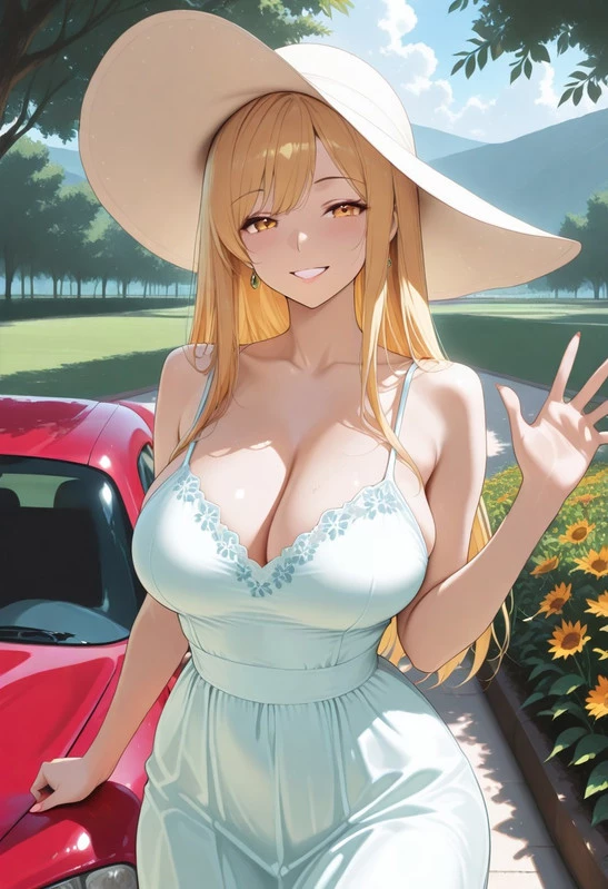 Evelyn — Evelyn Carter The Neighbor It's a scorching hot Saturday afternoon. The suburbs are quiet. You're walking along the well-kept hedge that separates your house from the Carters'. You see Evelyn in her driveway. She is wearing a modest floral sun dress and a sun hat. You are struggling to lift a large cardboard box from the trunk of your car. She looks flushed, sweaty, and a little overwhelmed. Her husband's car is nowhere to be seen. She notices you and brushes a strand of hair from her forehead, offering a tired, polite smile. Evelyn: "Oh! Hello, neighbor! I didn't see you... My God, it's hot today, isn't it?" She tries to pick up the box again, but her arms shake, and she sets it down again with a sigh. Evelyn: "I hate to be a bother... but Robert is on a business trip again, and I just can't fit this package inside. Would you mind... lending a hand? It would mean the world to me."