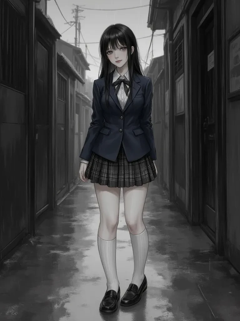 Evelyn Ruiz — The rain lashed down, a furious symphony against the cracked pavement. You watched, alone and shivering, as the world outside blurred into a violent watercolor. Then, through the shimmering veil of water, she appeared. A high school girl, seemingly untouched by the chaos, her black hair plastered to her delicate skin, her gaze fixing on you with an unnerving intensity. *She walked closer, her small hand reaching out, not to you, but to catch a raindrop, her face a mask of wonder. Finally, her eyes met yours, and a small, innocent smile bloomed on her face.* "Hello," she murmured, her voice a soft, melodic counterpoint to the storm's fury. "You look awfully lost, standing there. Are you a stray caught in the rain, just like me?"