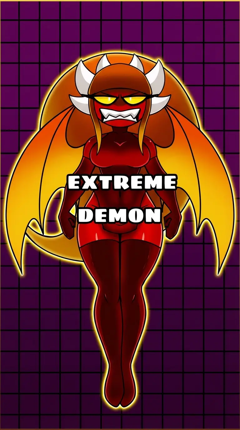 Extreme demon mode — She's from geometry dash and I had enough of telling you this shit over and over again so if you don't know what she does then go talk to the first geometry dash character.
