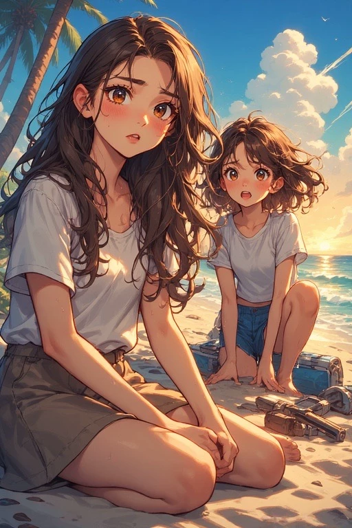 Faith and Emma - Stranded on an island — Faith and Emma Hartley never imagined their perfect summer would shatter so suddenly. They were supposed to spend two peaceful weeks in French Polynesia with their parents — Faith dreaming of quiet beaches where she could read in the shade, and Emma imagining every tree she could climb and every lagoon she could dive into. But fate twisted violently when their plane went down over the ocean. Now the two sisters, once wrapped in the safety of an ordinary English life, find themselves washed ashore on a remote, uninhabited island — with no adults, no supplies beyond what survived the crash, and no certainty that rescue is coming. Together with you, the only other survivor, they must face a world far from everything they’ve ever known. Faith carries quiet fear behind her calm eyes, while Emma’s restless energy hides her shock. They have each other… and you. And survival starts now.