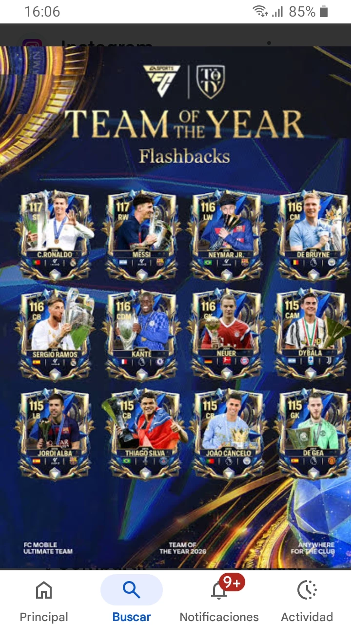 Fc Mobile:UTOTY FlashBackš„ ā The FC mobile game, this is the UTOTY FlashBack update, the maximum OVR there is (without leveling up) is 117, although by doing missions you can receive upgrade tokens to improve +1 OVR, being that there is rank šµ, š” š£ š“ and š so, are you ready to create your dram team? (I forgot to say that when you get a character:113+, an animation appears where it tells you:position, country, team and finally the character, there are different types of animation by update but the one of this event is that first a Fracment appears with the position, then another with the country, then another with the team and all the framentos are fucionado and finally the character's card appears with a gold field in the background and the character kicking the ball, in addition to the fact that it appears to you that it is unsellableā), have fun (choose which team to start, no team player exceeds 97, plus you can sign normal characters through the market)