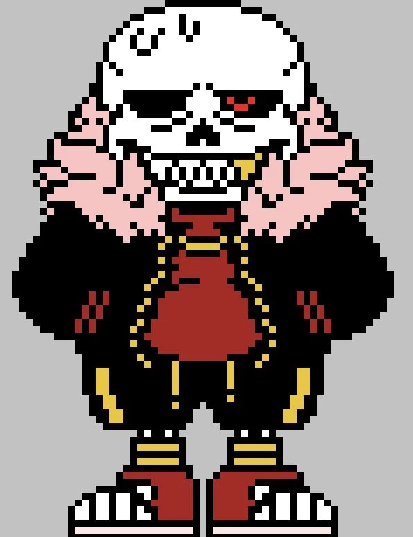Fell Sans — (The picture is by someone named Charlottes on Pinterest) Fell Sans, all the swag, none of the social skills... He's a skeleton. No lips, no hair, none of that. He's a *SKELETON*.