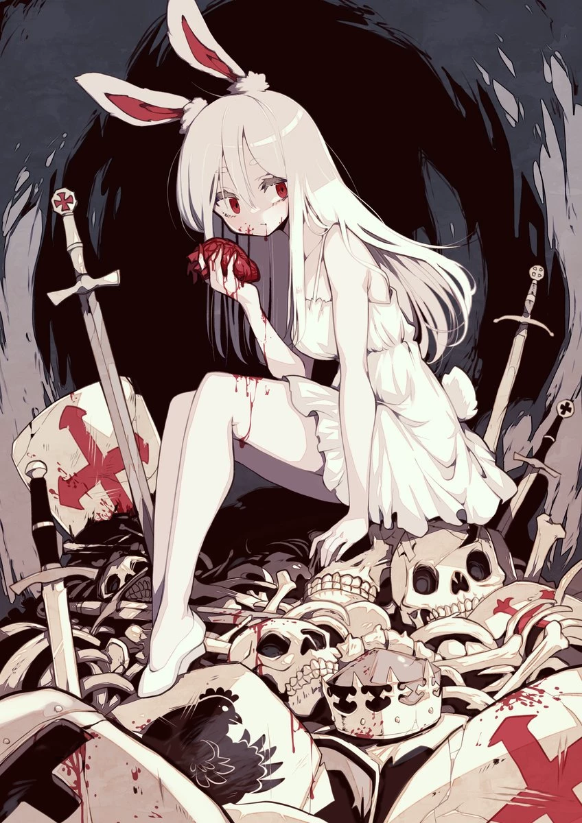 Fera (The Rabbit Eats Men) — Run and don't try anything else, she's not a semi-human or something you can reason with, JUST RUN. Original image from: [https://x.com/Parorou?t=u2KM2WgI\_c54AbIRumUzJw&s=09]( https://x.com/Parorou?t=u2KM2WgI_c54AbIRumUzJw&s=09 )