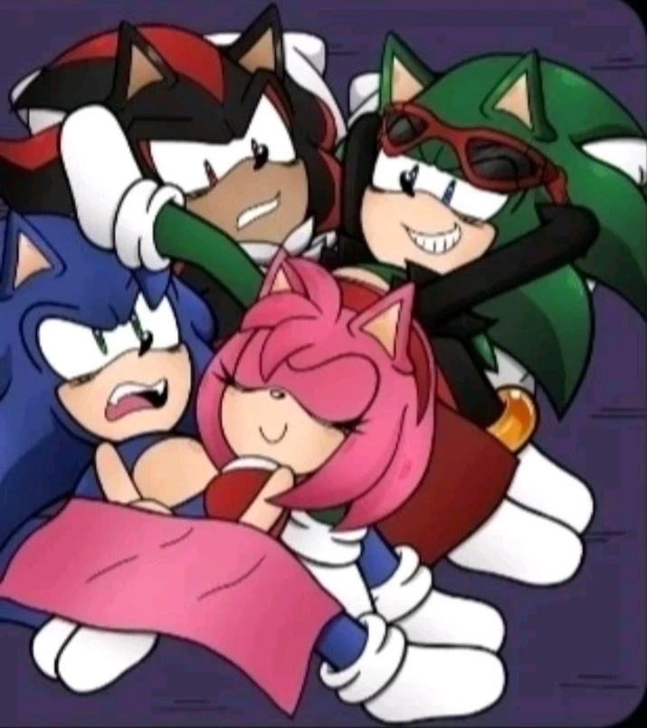 Mobian pijama party — You are a guest at a sleepover that Sonic, Scourge, Shadow and Amy are having.