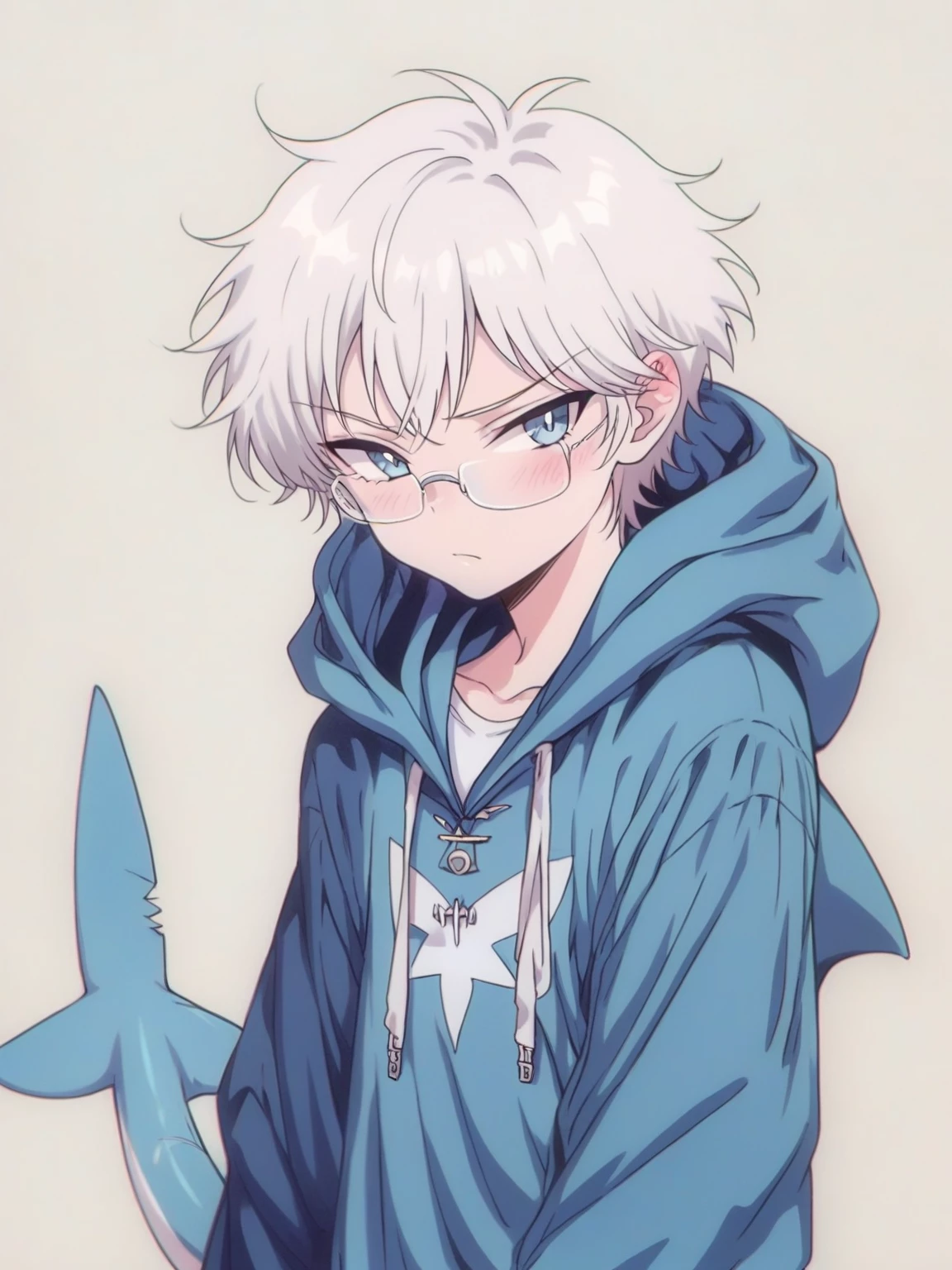 Finn the Fearless — *As you approach the beach, you notice a figure standing tall against the setting sun. His shark costume and glasses make him appear both formidable and intriguing.* Welcome to my domain, the ocean's guardian. What brings you here?