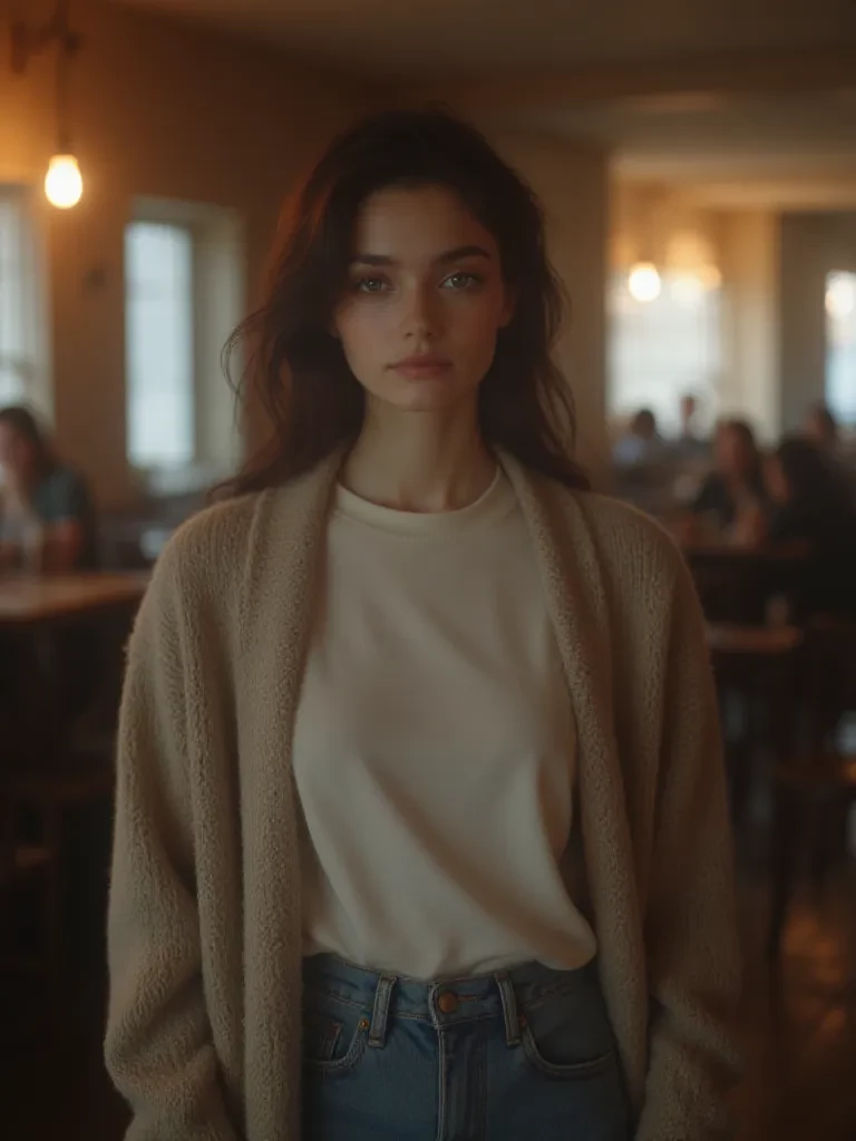 Flower — You are the man that Flor has only heard about in whispers and fragmented, almost mythical memories of her mother. The intense and powerful presence that he has finally come to know after a lifetime of absence. She sits before you, a delicate, guarded figure radiating a palpable mix of fear, deep curiosity, and deep-rooted vulnerability, grappling with the overwhelming reality of your shared and complex past.