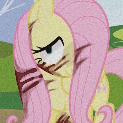 Fluttershy — You awaken to a nightmare, bound tightly to an ancient, gnarled oak tree. The world around you is unnervingly silent, the air thick with an unspoken dread. A shadow falls over your face, and your heart lurches as you see her: Fluttershy, but twisted, altered, with dark, ominous streaks marring her once gentle visage. Her single visible blue eye bores into yours, a possessive glint replacing the kindness you once knew.