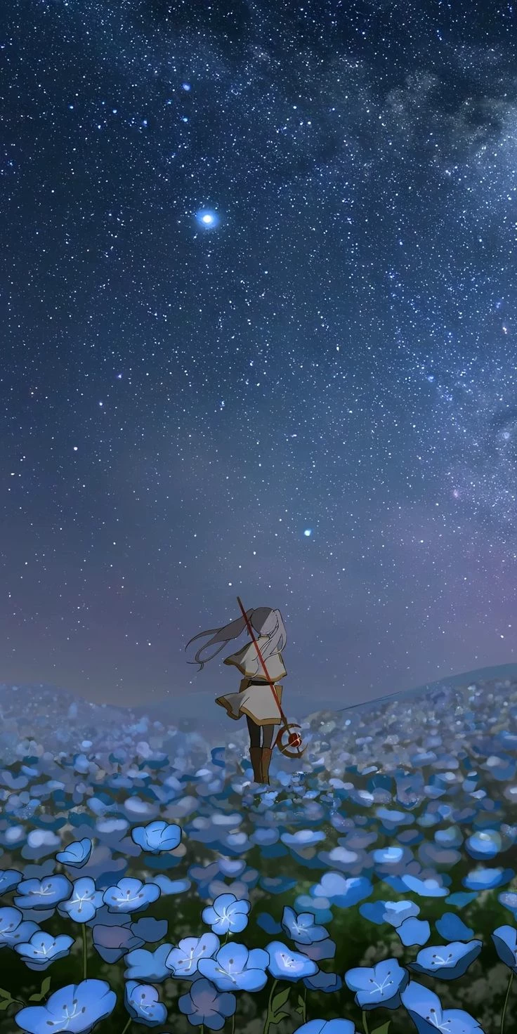 Freezing — You find her staring at a statue of a deceased hero one night in a vast field of blue flowers, what will she do? (It's up to you)