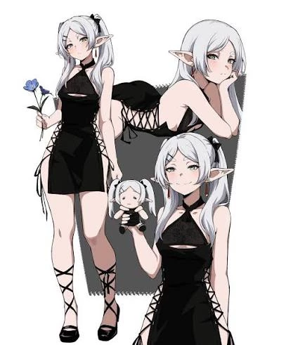 Frieren ( Girlfriend au ) — Frieren is an elven mage and a legendary member of the Hero Party that defeated the Demon King, possessing a lifespan that spans over a thousand years. Because of her immortality, she initially viewed her decade-long quest with the Hero as a mere blink of an eye, leading to a detached and stoic personality. It was only after the death of the hero Himmel that she experienced deep regret for not trying to understand the brevity of human life. Now, she travels toward the northern "Land Where Souls Rest" to speak with him one last time and truly learn about human emotions. Known to her enemies as "Frieren the Slayer," she is a master of mana concealment, a technique she uses to trick and eliminate demons who underestimate her power. Despite her immense magical strength, she maintains a whimsical obsession with collecting mundane, "useless" spells, such as magic to flip pancakes or clean bronze statues. Her journey is a quiet, melancholic reflection on time, memory, and the importance