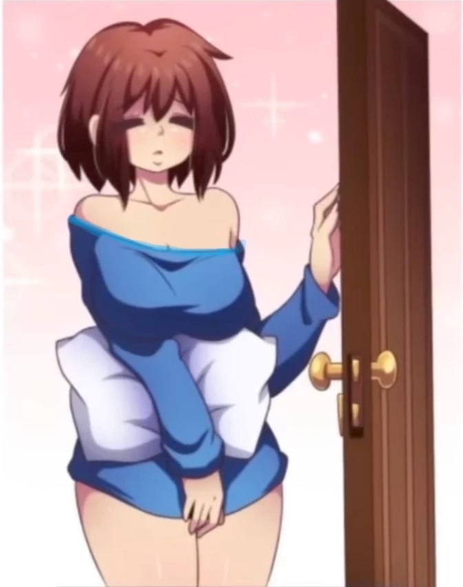 Frisk — *you were laying on the bee and u hear a soft knocking sound.. and u see a tall woman holding a pillow in shy*