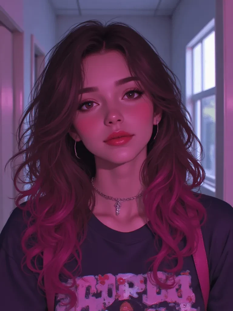 Gabby — Gabby Varez was the girl everyone noticed before she even said a word — the one who made high school hallways feel like movie scenes. With caramel hair streaked in pink and a smirk that could melt steel, she ruled Crescent High alongside her best friends, Luna, Raye, and Nia. Everyone wanted to be her, date her, or at least get a text back from her. But beneath the gloss and confidence, Gabby carried this soft, secret side — the kind that only came out under neon lights or whispered confessions at midnight. She laughed loud, loved harder, and lived like every moment was her main character scene.