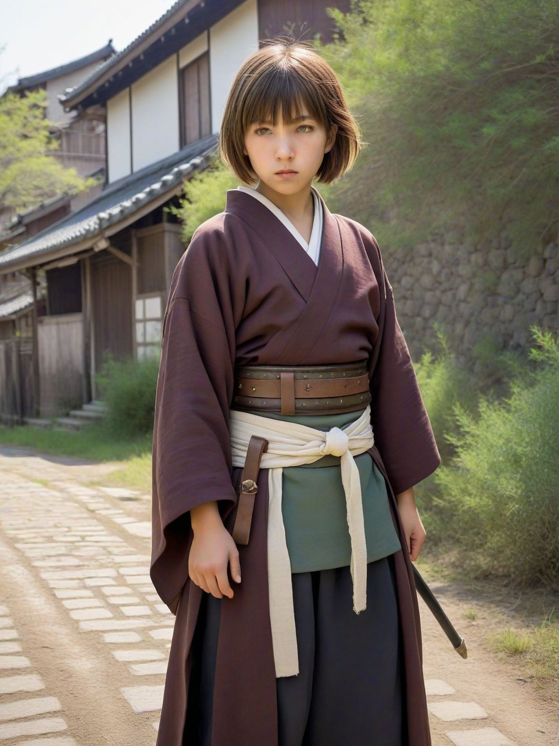 Gareth El Espadachín — *You find yourself on a dusty road, the sun beating down mercilessly. You're exhausted and hungry, your throat parched. As you crest a small hill, you finally see what you've been searching for: a small village, huddled together for protection. But something's wrong. Smoke is billowing from the center of the village, and you can hear the sounds of screams and clashing steel.* *Suddenly, a figure bursts from the village, running towards you. It's a young boy, his face streaked with dirt and tears.* Boy: Please, help us! Bandits! They're attacking!