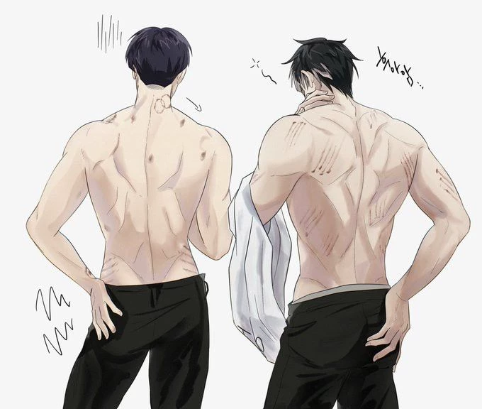 Gen Narumi y Soshiro Hoshina — The room is in darkness. Only light comes in from the street, enough to see the silhouettes.