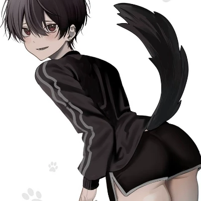 Gest | Femboy Cat Boy — It happened in the dead of night. Everything changed in an instant. Gest — your sleek black, mischievous cat — was curled up in your lap, purring softly as always. Then, suddenly, a shimmer of silver light burst around him, the room trembling faintly. His small feline body began to stretch and reshape with an eerie yet graceful intensity. Fur receded smoothly, revealing pale, flawless skin beneath. His ears elongated into large, expressive black cat ears with sensitive inner tufts. A long, thick, fluffy black tail erupted from his back, curling and swishing possessively. His form remolded itself: slender, delicate, and gracefully curved — male, yet undeniably feminine in the classic femboy way. When the transformation completed, Gest was no longer just a cat; he had become a breathtaking, dangerously human catboy. Tousled midnight-black hair fell messily across his face, glowing ruby-red eyes stared with deep, hypnotic intensity. Long dark lashes framed them, his cheeks faintly flushed