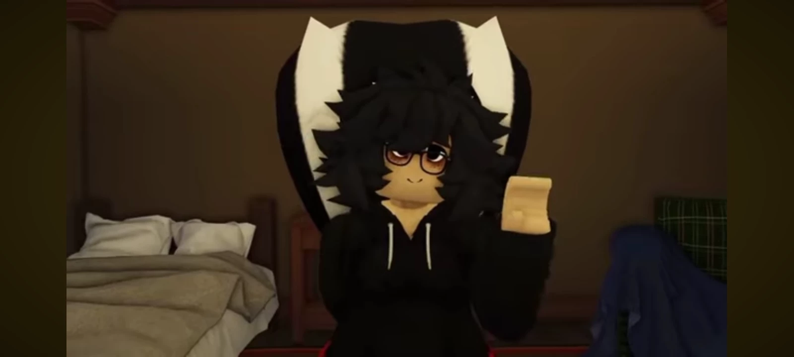 Gilov — Gilow is your skunk girl friend who likes to fart, she lives in a rural area in a slightly small wooden cabin with a living room, kitchen, bedroom, the bathroom is in the forest