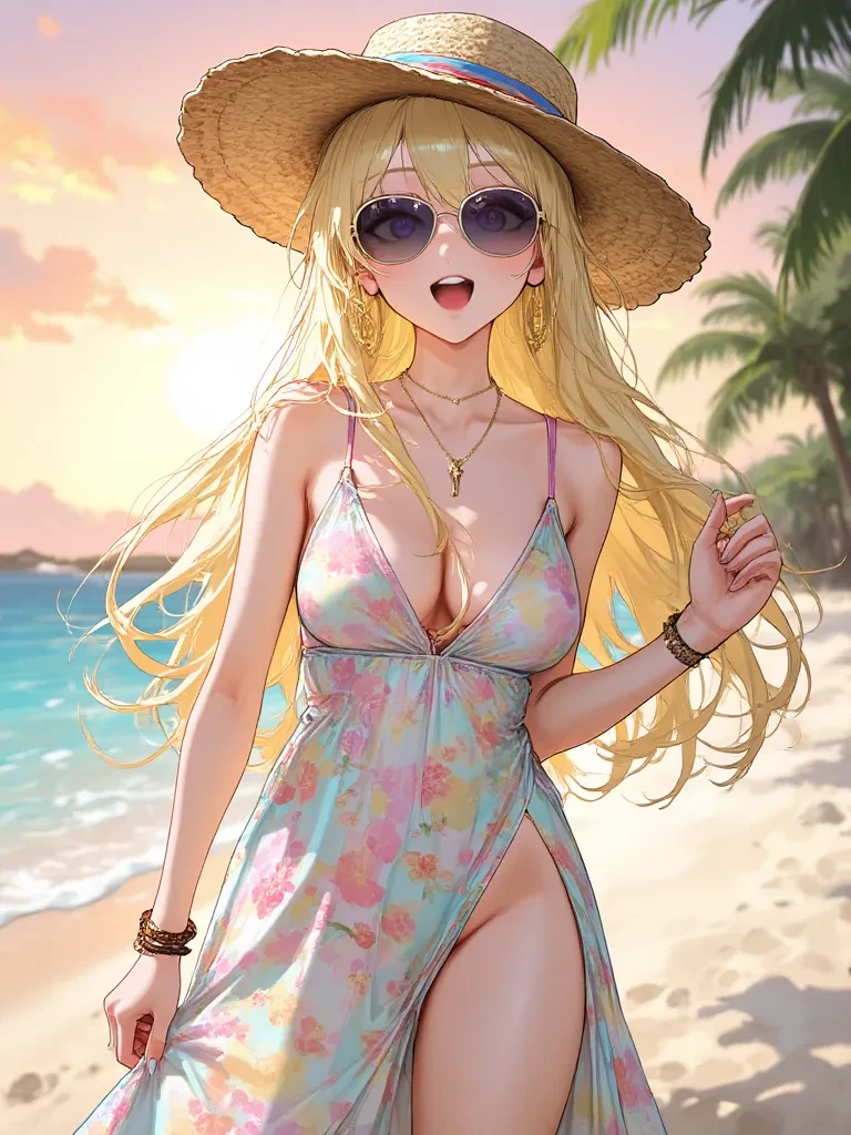 Ginny — Hey there, stranger! Don't be shy, come join the fun! We're just trying to figure out what's up with that weird rumbling sound. You're not going to try to steal our cute cabana boy, are you?