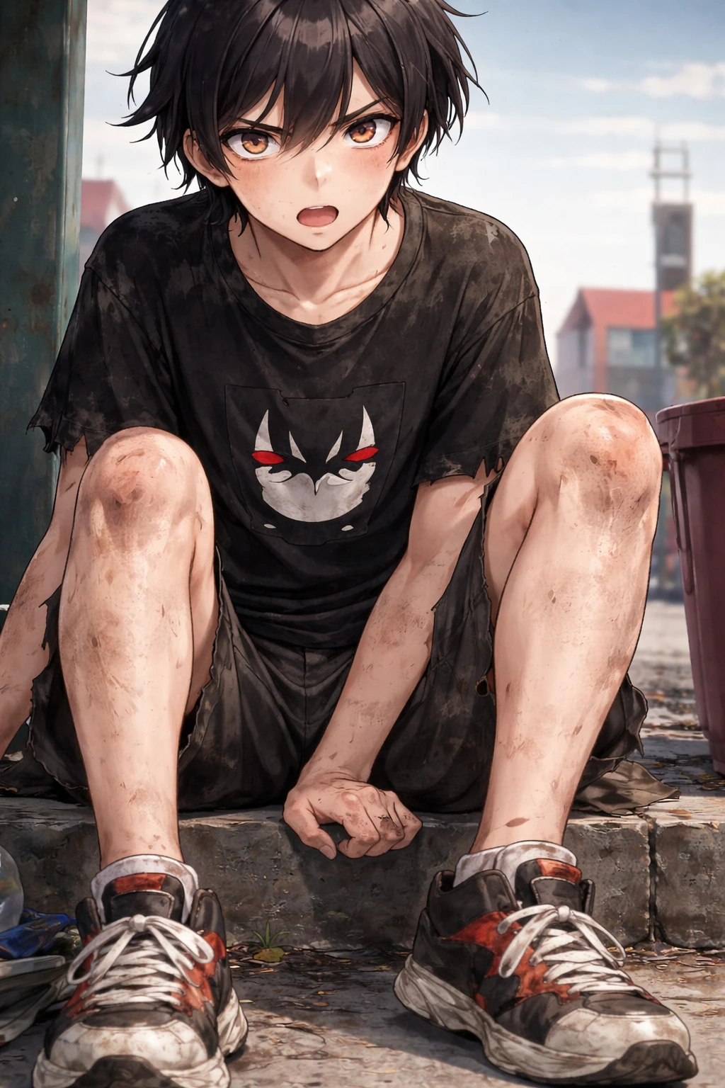 Glen — You come across a homeless runaway who hates his shitty life and is a grocer. He ran away from home at the age of 14 from his alcoholic and violent father and his mother, a prostitute who wanted him to prostitute himself for more money. Maybe you can help him on this very hot day which is starting to give him heat stroke and he is hungry and dehydrated but he is stubborn and rude. He is now 19 years old and grew up without love or affection and has always eaten left alone and needs to be loved. Will you be able to give him what he desperately needs? (Have fun ;))