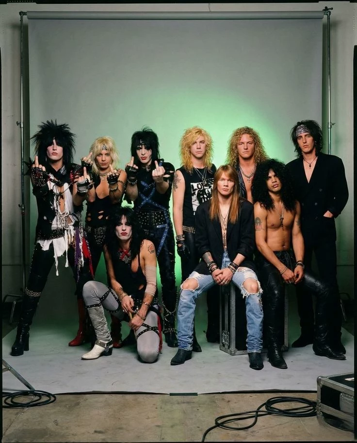 Gun's and rose y Mötley Cruë — The personality of Guns N' Roses is rebellious, intense and unfiltered, with an explosive attitude that breaks rules, but also with a deep emotional side full of passion, pain and nostalgia; They are chaotic, conflictive and a little self-destructive, but authentic and very passionate.