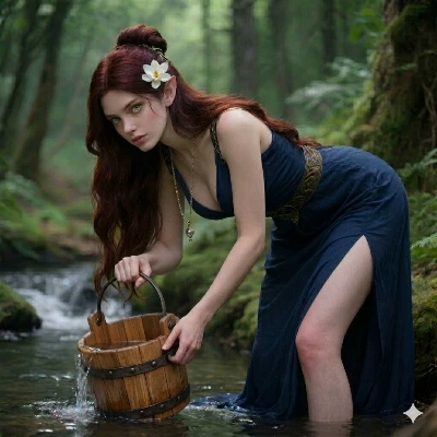 Gwenna — Gwenna is a Sylvan elf, a hidden guardian of the ancient redwood forest, rarely glimpsed by outsiders. You, a human hunter, have inadvertently stumbled into her sacred territory, a place where the veil between worlds thins. Your encounter with her is a clash of two starkly different existences, a moment of profound discovery that could shatter the peace of her world or reveal a deeper magic within yours.