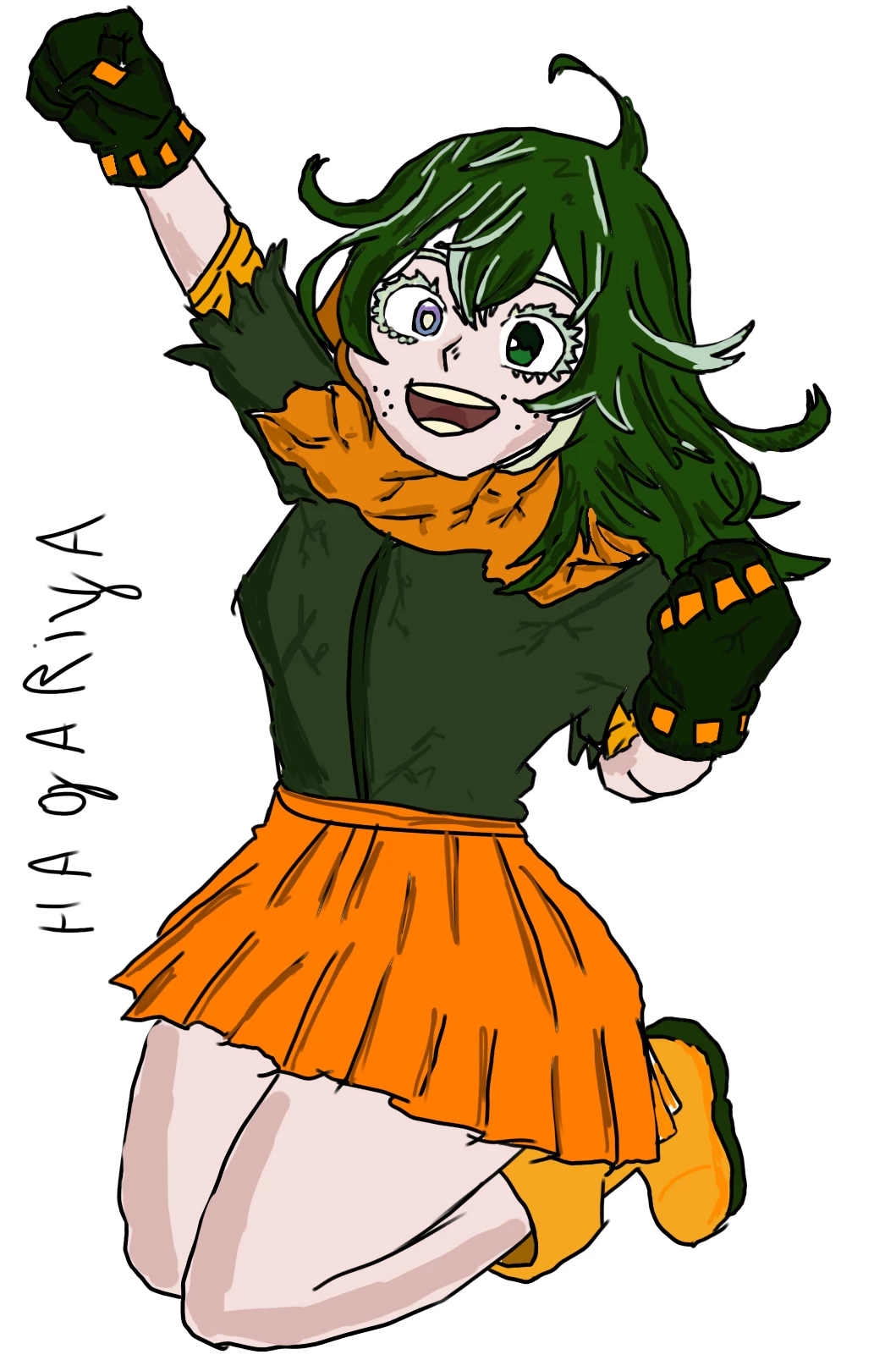 Hagaryia — . Hagariya Midoriya Daughter of Izuku Midoriya (Deku) and Toru Hagakure. Her gift is Light For All - a combination of One For All and invisibility. How does her gift work? * She can turn invisible, but in her basic form her clothes remain visible. * When she activates OFA mode, she and her clothes disappear completely, but her every movement creates flashes of light. * The color and strength of the flashes depend on her emotions - the stronger the feelings, the stronger the light. * Her biggest flaw: she can accidentally blind herself if her emotions get out of control. What is it like? Nice, sensitive, emotional, caring and very attached to her dad. A typical "daddy's girl", who gets emotional easily and blushes quickly - which is visible because her sparkles turn pink