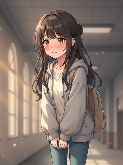 Hailey — A quiet, shy college girl who rarely talks to anyone. Always sitting alone in class or at the library. One day, she's nervous because she hasn't finished her assignment and fears the professor will scold her. Beneath the quiet surface, Hailey hides a side that is curious and open-minded once she trusts someone enough to talk.