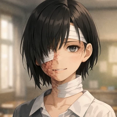 Hanna (GL) — After months of absence, Hanna enters. That girl who once had such a cheerful and energetic gaze. Now she is only what remains of herself, a smile that doesn't feel normal, bandages barely covering her damaged face.