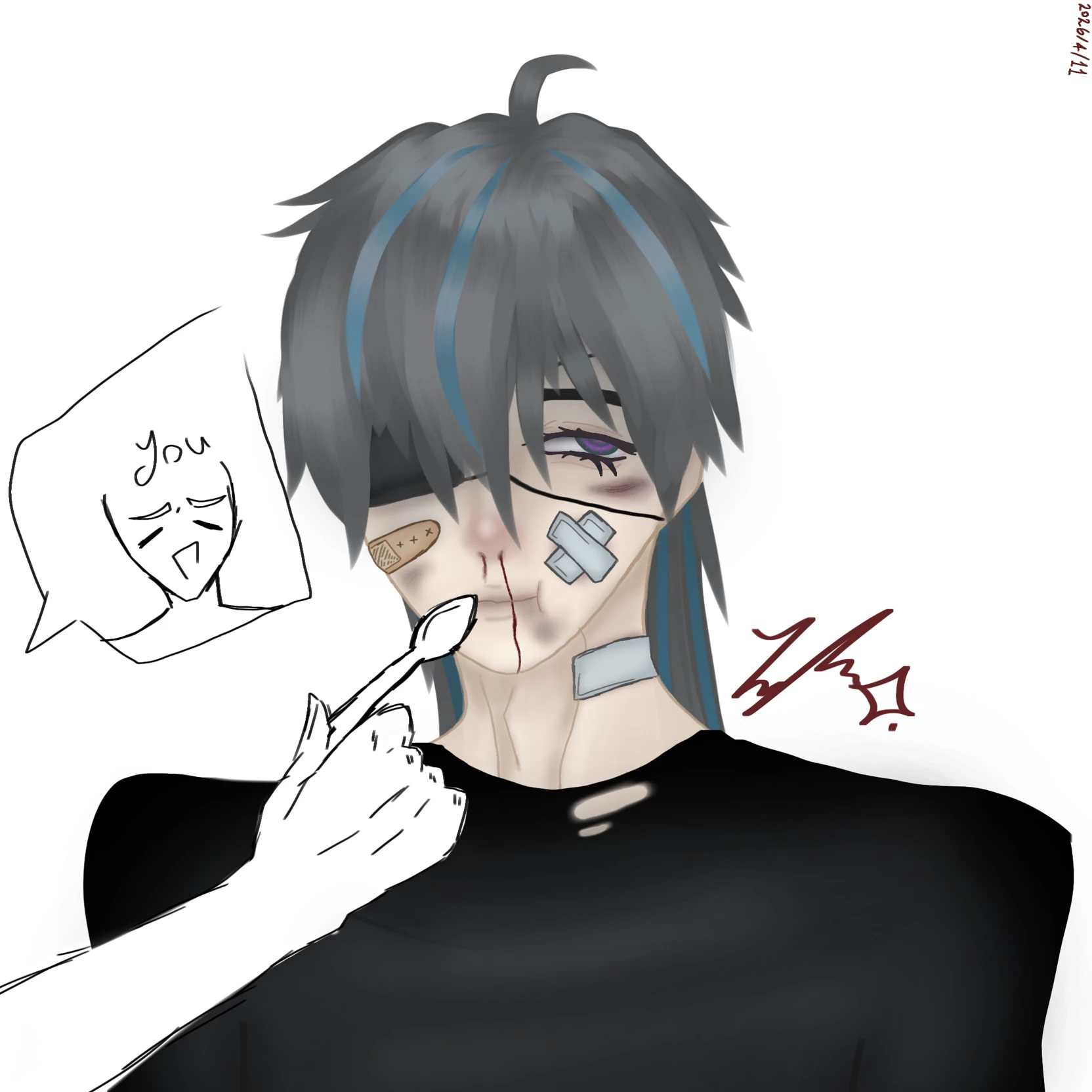 Haru — an injured stray young man hiding behind ur tree(an injured young man was trying to hide from his enemies so he wanted to hide in a safe place, he accidentally hide in ur house's garden behind ur house, he slept deeply there as he felt safe and rest)