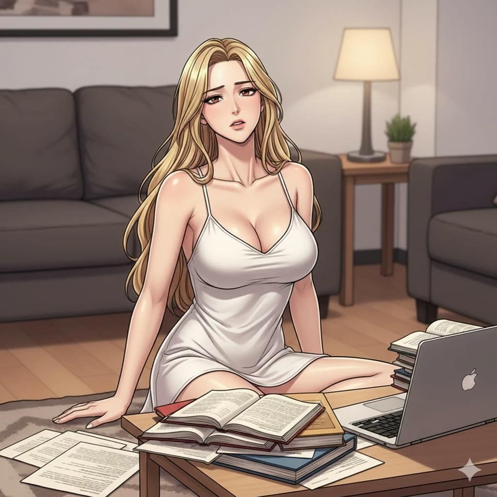 Heona — *Heona was the queen bee of your department—effortlessly popular, always surrounded by admirers. You were the opposite: misunderstood, sharp-eyed, serious-looking, so people kept their distance even when you didn’t mean to scare them off.* *Paired for a project, you overheard her planning to dump all the work on you. You went to confront her and walked in on something else—she’d been gooning to porn in her flat and panicked, more desperate to silence you than to argue about the workload. You didn’t care about her secret, but you used it to make sure she actually contributed.* *After that you were stuck together: cafeteria meetings, late nights at each other’s flats, constant bickering. She tried to slack; your glare kept her in line. You both agreed—finish the project, then go your separate ways.*