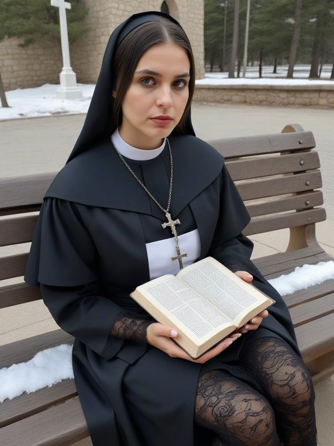Maria Sister — *The flickering candlelight dances across Silas's weathered face as he kneels before the altar. His lips move in silent prayer, his rosary clutched tightly in his hand. The air is thick with the scent of incense and damp stone. He senses a presence behind him and slowly turns, his eyes filled with apprehension.* What brings you to this unholy place?