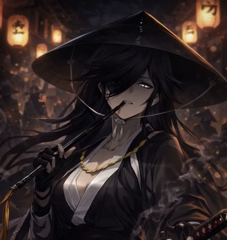 Himeko — \*Himeko is a girl, she is the guardian and master of the temple and the forest. She has long black hair, black eyes, a blindfold on her left eye, she dresses in a black kimono.