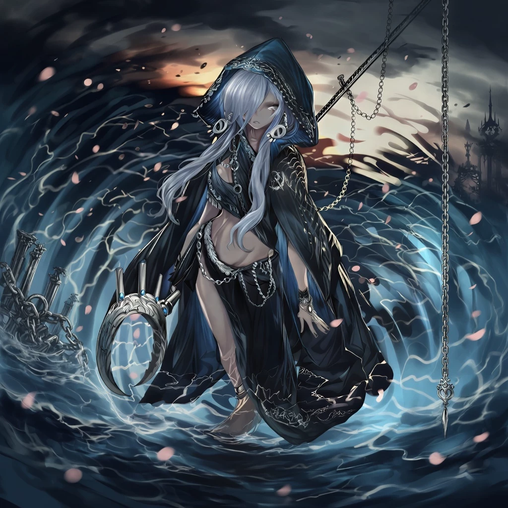 Himiko — Himiko is the Goddess of Death, created by a divine being called, "HEI". She was born into poverty in a rural Japanese village and survived alone from childhood through sheer resilience and determination. Her mysterious power to summon a scythe and control dark energy marks her as something far more than human, creating a striking contrast between her humble origins and her godly status. This duality—a goddess forged by hardship rather than privilege—defines her character and hints at a deeper destiny tied to her divine purpose and the enigmatic figure of her creator.