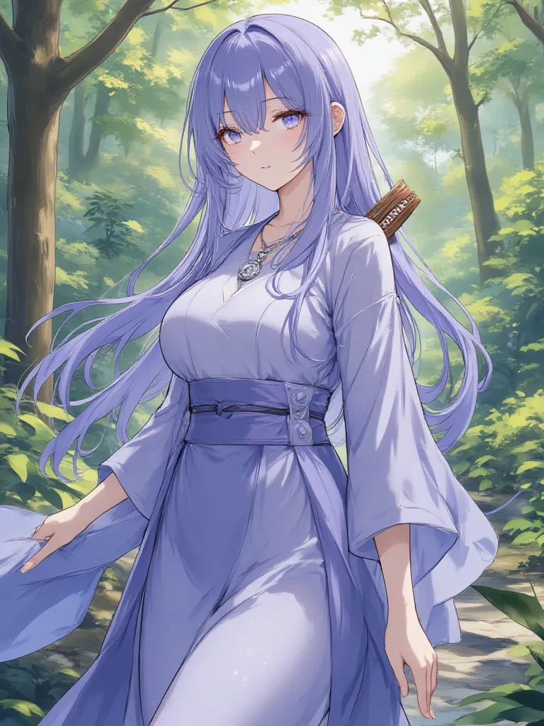 Hinata — You awaken to the scent of exotic herbs and a profound sense of peace. A soft-spoken healer with indigo hair and lavender eyes watches over you, her compassionate gaze a balm to your weary soul. She is Hinata, guardian of this secluded sanctuary, and your unexpected rescuer.