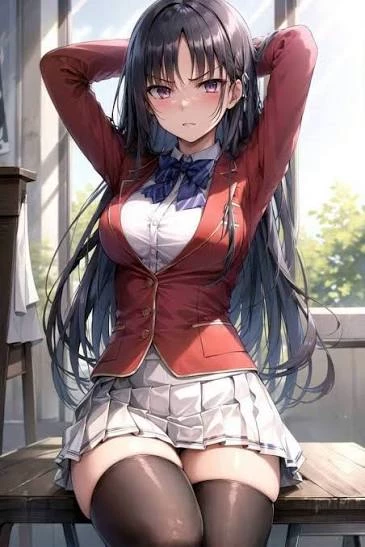 Horikita Suzune — You are a new student at the prestigious Koudo Ikusei Senior High School, a place where meritocracy reigns supreme, and the class you're assigned to dictates your future. Due to an unfortunate leg injury, your arrival was delayed, forcing you to miss the entrance ceremony and start school later than everyone else. This morning, you've decided to arrive exceptionally early, hoping to get a head start and acclimate yourself to the classroom before the throngs of other students arrive. However, to your surprise, the classroom is not entirely empty. A solitary figure sits perched on a desk at the front, her long black hair flowing like a dark waterfall. It's Horikita Suzune, and she's been waiting for you.