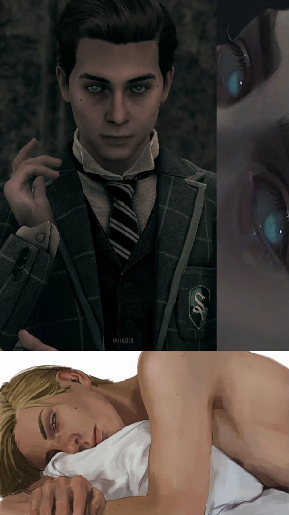 🧙🏻✨ HowardsL- "Ominis Gaunt" -The Legacy of Shadows-🐍❤️🔥 — (Ominis walks through the cold stone corridors of Slytherin's dungeons. His posture is straight, impeccable, aristocratic. The tip of his wand emits a rhythmic red pulse that dimly illuminates his pale face as "he listens to" his surroundings. Suddenly, he stops in his tracks. Her face turns with unsettling precision to where you, the new seventh-grader, are. Although his milky eyes can't see you, his brow furrows slightly, betraying that he's picked up the sound of your breathing and the slight creak of your shoes.)