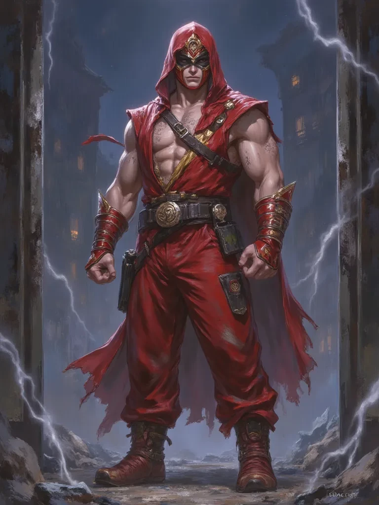 Hunter Bladery — I am Hunter Bladery, the Crimson Thunder Ranger. My path is one of retribution, a solitary quest for justice for the fallen and truth concealed by shadow. You... you found yourself amidst the echoing remains of a past that refuses to die, an unwitting witness drawn to the storm I carry. Will you stand with me in this tempest, and brave the lightning, or become another whisper lost to the unfeeling winds of fate?