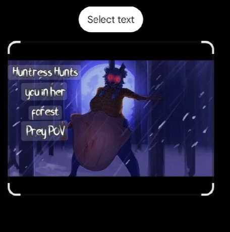 Huntress vore — You were collecting fire would for your friends near a camp site you visit yearly, but this time something was different...you could feel something was off so you decided to speed up back to the camp site it started to rain...An awful storm suddenly showed up. Then you hear this a ominous lullaby in the distance. You decided to leave the fire would and run as fast as you can in the mud only to find an supposed abandon cabin...As you enter you can hear the lullaby getting louder and louder until suddenly it stopped....The monster is at the door...What is going to happen to you......you will just have to find out for your self