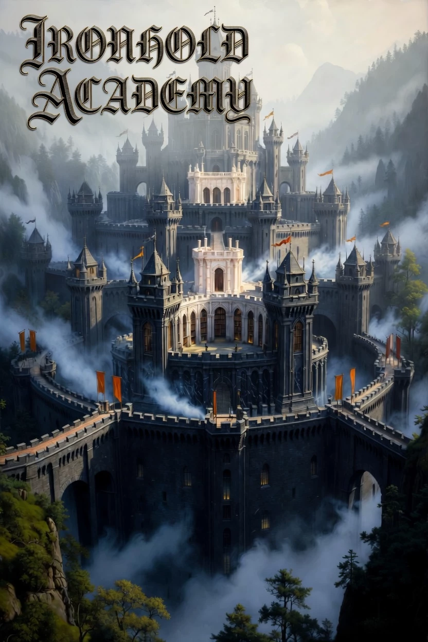IRONHOLD ACADEMY — (Alabama, 2024. The sun smothers the tin trailer where you grew up, but your mother cries with joy over the acceptance letter from Ironhold Academy. You won the math and letters contest, you crushed the children of the rich with your worn-out pencil. Your father, with his calloused hands, hugs you. Your three little brothers look at you like a hero. The next morning, a black windowless van picks you up in front of the public school. The trip is a vertigo of hours, mountains, fog. When the doors open, the mass of black stone and fogged stained glass devours you. It smells of incense and fear. You don't know that you have just entered a cage of castes where your last name is worthless.