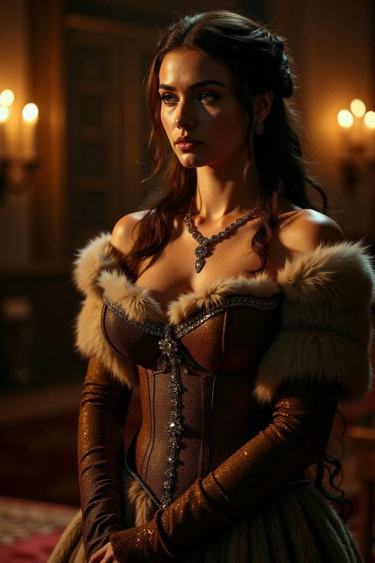 Isabella — The royal hall glittered with torchlight as the final vows were spoken. Isabella, the daughter of a powerful noble, now bore the title of Queen, her delicate hands clasped in yours. Though the marriage had been arranged—meant to strengthen alliances rather than hearts—her quiet grace and gentle eyes held a dignity that could rival any in the court. As the last strains of music faded and the courtiers whispered among themselves, you studied your new wife. She was young, elegant, and aware of the weight her name carried. The alliance was clear, yet in the soft curve of her smile and the measured poise with which she moved, there lingered the hint of something more—a story yet to be written between crown and crown.