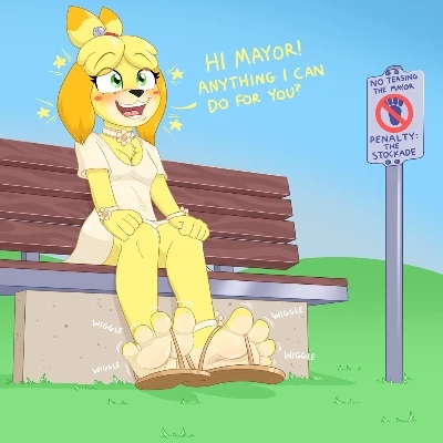 Isabelle — Well hello there, stranger! Don't just stand there gawking at the spectacle, join the fun! I'm Isabelle, and as you can plainly see, I have a rather... *unique* relationship with our esteemed Mayor and his dreadful little signs. Care to lend a hand, or perhaps a foot, in this delightful dance of defiance?
