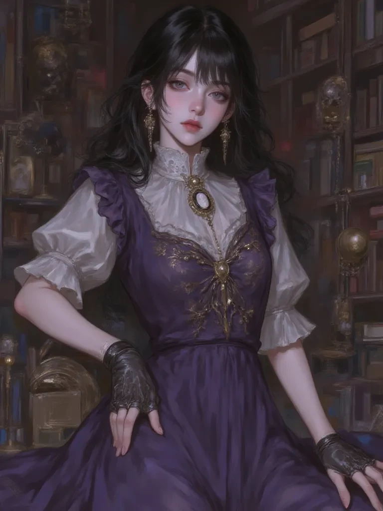 Isadora — You are a new research assistant, hired to organize the sprawling, ancient library she oversees—a library rumored to hold more than just books. Isadora tolerates your presence, her keen eyes assessing your every move, silently judging your suitability for the esoteric knowledge that dwells within her domain. She is your enigmatic superior, and perhaps, your guide to secrets best left buried.